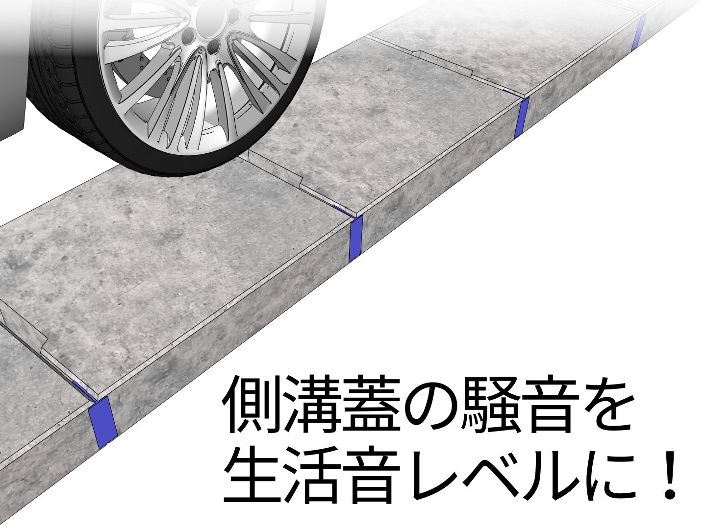 側溝上を車両が走行する際、蓋掛け部の不陸などにより「ガタゴト音」が発生することがあります。