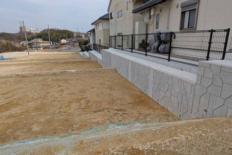 従来型の工法では掘削幅が大きく既設の住宅が隣接しており、施工が困難であることが懸念されたことから、掘削幅の取れない現場にも実績のある、柱状地盤改良体と鋼管杭で構成される自立式擁壁、FLパネル工法をご採用いただきました。