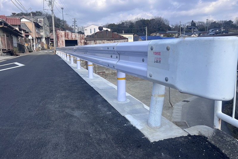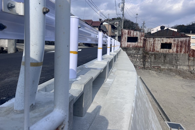 幅広の天端で交通弱者(子供、高齢者など)などの歩行にも安心なプレキャストガードレール基礎「プレガード弱者対応型」をご採用いただきました。